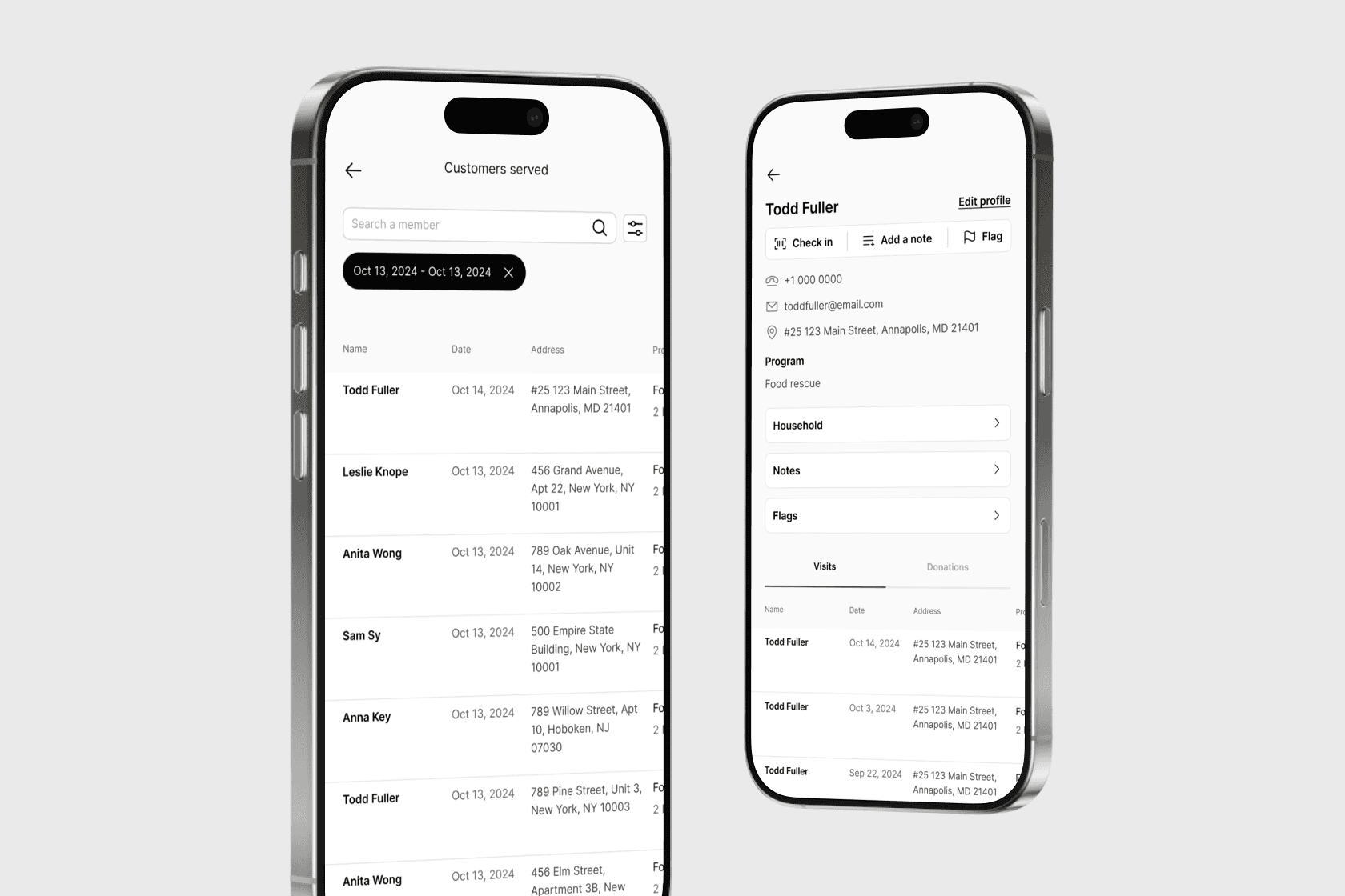 Employees can check customers into food and compost programs with limited data visibility.
