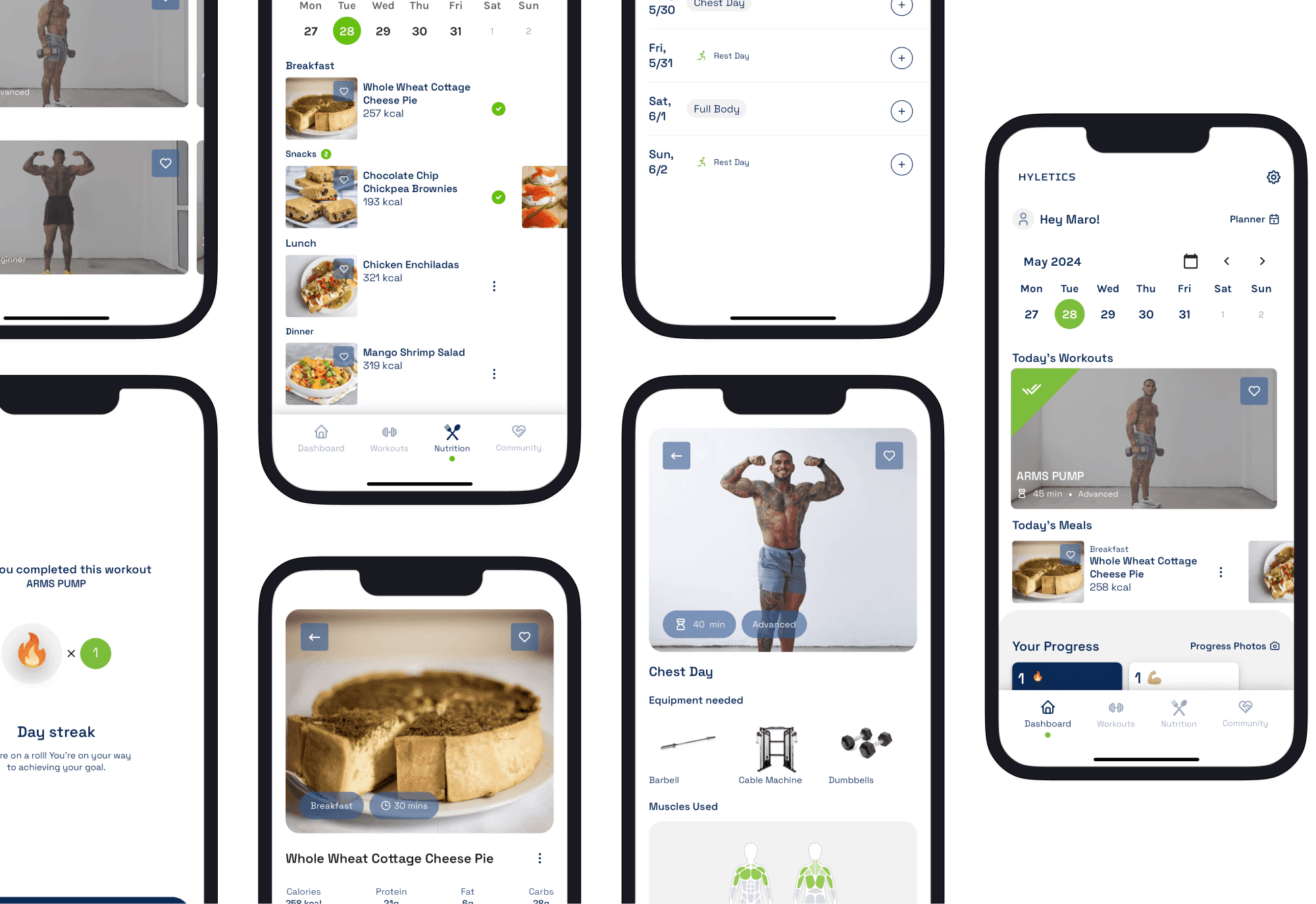 Accountability is key. Hyletics provides comprehensive progress tracking tools like workout logs, meal logs, streak tracking, weight logging, and even strength progress monitoring. These features keep users focused and motivated, allowing them to visualize their progress and crush their goals.