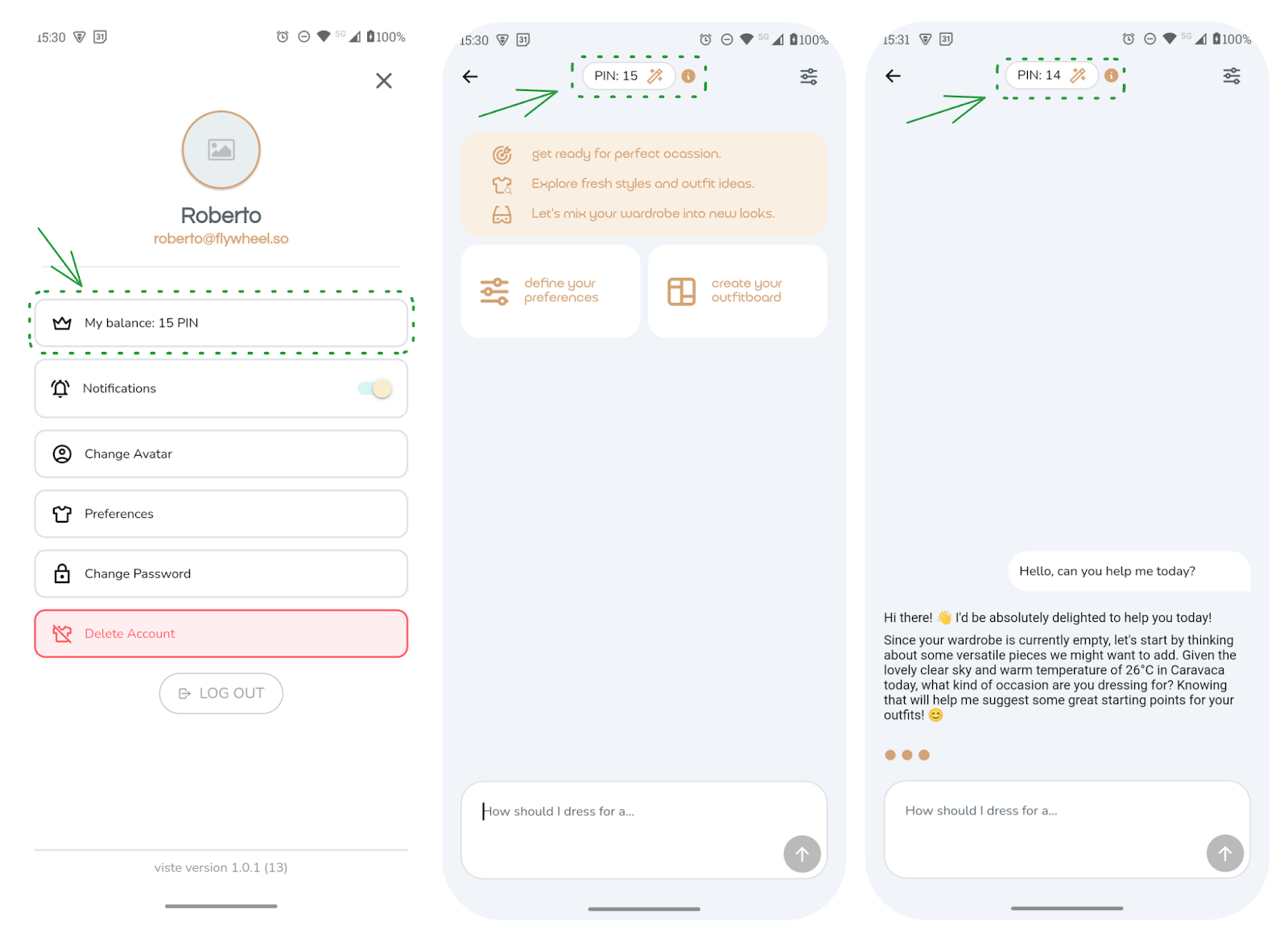 Here’s how it works in my app, 'Viste', which uses a virtual currency called 'PIN.' When a user signs up or subscribes, the system gives them a bunch of PINs. Then, every time they use a feature that hits an AI service, the application just charges them some PINs.